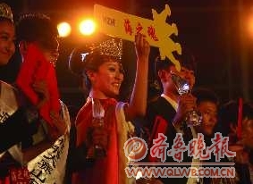 18日晚,在啤酒城中心大舞台,“海之魂”杯2011青岛国际啤酒节校园艺术之星系列评选大赛总决赛落下帷幕,最终胡菁和孙超分别获得“啤酒皇后”和“白马王子”称号。 本报记者 张晓鹏 摄影报道