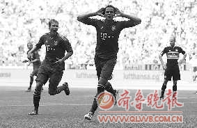 北京时间8月20日晚,德甲联赛第三轮比赛中,拜仁坐镇主场迎战汉堡。拜仁在第13分钟就由范比滕打破僵局,随后罗本、里贝里、戈麦斯、奥利奇各进1球,拜仁5:0大胜汉堡。图为范比滕庆祝进球。