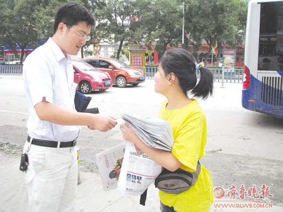 本报泰安8月21日讯(记者 王颜)“孩子参加这个活动,我们作为家长从来没有感到孩子这么优秀。”21日上午,在大润发附近,报童袁泉的妈妈看到孩子独自一人穿梭在人群中卖报,不由地感叹道。