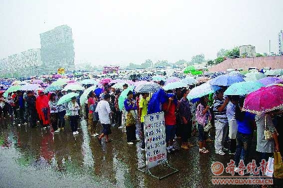 21日,上午10时许,雨开始渐渐大了起来。记者来到菏泽火车站,看到和一周前相比,旅客骤然多了起来,售票厅前已排起“长龙”~~~购票的队伍排了几十米,几乎排到站前路上。