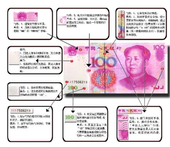 “这四个冠字号码的100元假币,在纸张、油墨、印刷技术三大方面并没有新的突破,仍然是机制胶印假币,与以往假币不同之处只是冠字号码的变化。”中国人民银行烟台中心支行货币金银科的相关工作人员介绍说。