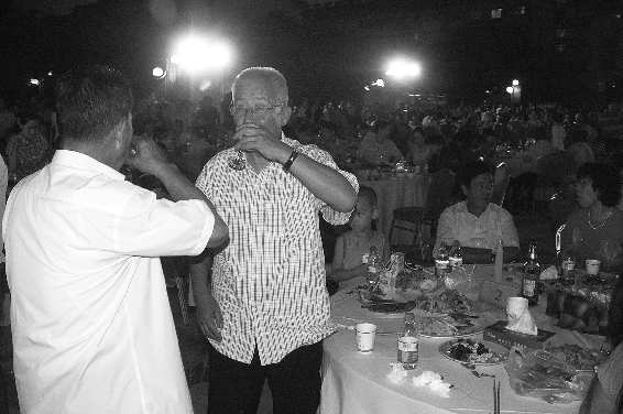 与此同时,舞台下的100余户居民投入到紧张的“百家宴”比赛中。三百多名参赛者瞬时摆出了长龙阵。炒、煎、煮、蒸,样样俱全;鲁、川、湘、粤等菜品,五彩纷呈。比赛规则为每户家庭派三名代表,共同协作完成三道菜,菜品自选,由到场嘉宾及小区居民做裁判,决出优胜奖。
