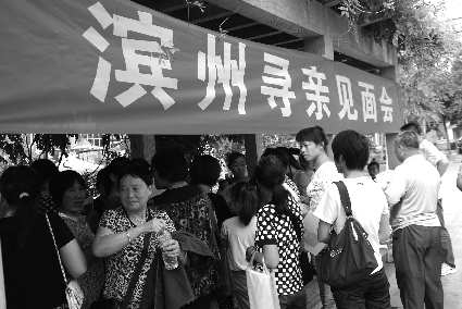 21日下午,记者在渤海七路银座广场见到了20多名来自滨州的寻亲者,他们全部为女性,最小的为27岁,大部分是来自滨州市各县区。活动负责人王女士说:“我们大部分是上世纪七八十年代出生在浙江,被抱养到山东的,如今很多人已经成家立业了。其实寻亲不为别的,只是总觉得心里有这么一道坎,就是希望能见一见失散多年的父母还有兄弟姐妹们。”另一位姓刘的负责人说:“这次来山东的寻亲团有50多人,我们寻亲者跟来自浙江的寻亲团都互相留下了联系方式,方便以后寻找亲人。我们还为来山东寻亲的老乡们准备了礼物,是我们滨州的土特产———老粗布,不管怎么样,我们找父母,他们找儿女,大家心情都是一样的复杂,既然这样的缘分让我们认识了,也算是迎客的礼节。”
