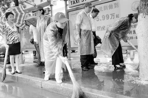 本报8月21日讯 (记者 孟君)20日上午,市委常委、宣传部长、市志愿者协会名誉会长李建华以志愿者的身份,手拿笤帚在人民广场银座商城门前清扫垃圾。与此同时,来自兰山区和市直各部门的1000余名志愿者也冒雨在城区开展清洁卫生、文明出行等志愿服务活动。