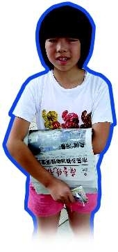 21日,在世纪泰华,记者看到一名穿着白净休闲衣服的女孩抱着报纸,蹲在商厦的门口。她就是顾雅静,来自江西南昌海安明道小学,是在放暑假后,从江西特地赶来潍坊看望爸爸的。
