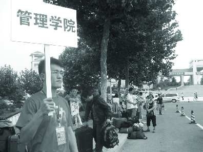 在体育馆二楼的楼梯处,一个提示牌上写着“学生能自理,家长请止步”,原来,这是学校建议家长让孩子自己独立地去办理各种入学手续。“现在大部分家庭只有一个孩子,有些家长大事小事都替孩子办理了,这其实对孩子并没有什么好处。”海大管理学院兼职辅导员夏老师说,尽管学校给出温馨提示,但还是有不少家长不放心,非得要跟上来帮孩子一起办理入学手续。