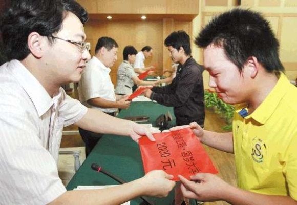 毕业于高唐二中的郭栋,今年以614分的优异成绩考上重庆大学。他说,考上大学家人很高兴,但是面对八千多元的学费,却一筹莫展。“家里就靠父亲打零工过日子,父亲为了筹学费去工地扛水泥。假期,我去汽车配件厂打工,可是两个月的工钱也解决不了学费。非常感谢好心人的资助,这两千元对于我很重要。”