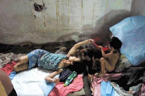 前几天,市区阴雨连绵,刘勇一家四口挤在租来的10多平方米的破旧瓦房里,7岁的女儿倩倩和3岁儿子正在给卧病在床的妈妈按摩,刘勇则拿起洗脸盆接屋顶的漏雨。尽管如此,一家人在一起还是其乐融融。