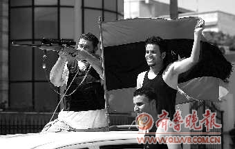 8月22日,利比亚反对派武装人员在首都的黎波里的街道上庆祝。 新华/路透