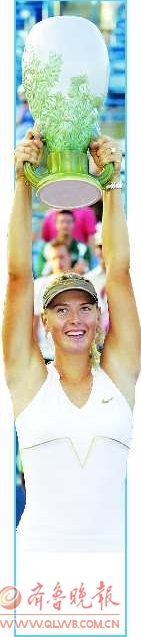 8月21日,俄罗斯选手莎拉波娃在颁奖仪式上。当日,在2011WTA辛辛那提网球公开赛女单决赛中,俄罗斯选手莎拉波娃以2:1战胜塞尔维亚选手扬科维奇,夺得冠军。 新华社发