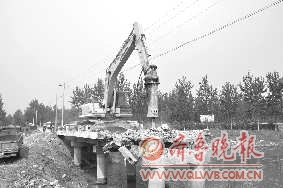 高赐官桥位于开发区高赐官村村头,是此次市交通运输局经济开发区分局拆除的第九个。该桥修建于1970年,距今已有40余年历史,也是损坏相当严重的一座危桥,目前该桥正在紧锣密鼓地拆除中。记者 孙珊
