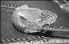 巨大的银色贝壳状的人工岛屿两边各有桥梁连接河岸,人工岛屿内设有日光浴区,时尚酒吧,咖啡馆和露天表演场。