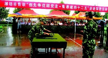 19日,由潍坊市青年联合会与武警潍坊支队联合举办的“军营开放日”活动,吸引了大批青联委员和普通市民前往参观。在现场,支队官兵表演了队列会操、拳术、枪械拆装、索降等,获得了阵阵掌声。通讯员 李明达 摄