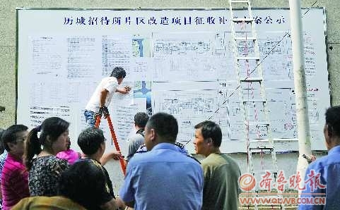 23日上午,记者来到历城区招待所片区改造项目指挥部。相关部门在改造片区现场公示出了《房屋征收决定公告》,该公告有两个附件,附件一为《历城招待所片区改造项目房屋征收补偿方案》(以下简称补偿方案),附件二为《历城招待所片区被征收房屋调查结果》,公示内容主要是本片区被征收房屋的权属、面积等情况。