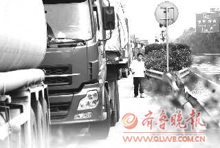 一名司机蹲在一辆挂着“豫A”车牌的大卡车前,不停摇头:“早上5点就出车祸了,当时就已经造成了堵车,可我们下午1点才从曲阜上的高速,咋就不通知呢?那边工地还急用车上的水泥呢,哎!”车队中,一些司机本想在前方的郓城收费站下高速,无奈被夹在车流中,进退不能。“目的地就在眼前,路却被前面的车堵死了,我已经等了4个多小时了!”一名司机说,一大早就出了事,到了下午2点还有车辆源源不断驶向该路段,“上高速的时候有人提醒一声多好啊,真不知道为什么会出现这种情况!”