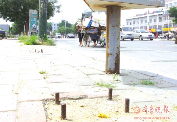 记者看到,这些留在地上的螺丝大多已经歪掉。在附近经营一家店铺的赵女士告诉记者,晚上经常有人在这里被绊倒,还有一些市民骑着电动车被绊倒。“如果这些螺丝没有用处的话,就赶快切割掉,别再留在这里绊人了。”赵女士说。