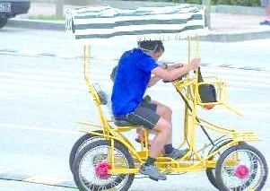 作品描述:开发区金沙滩新上了一个旅游项目———四轮自行车,双动力、双方向盘,玩起来很惬意。