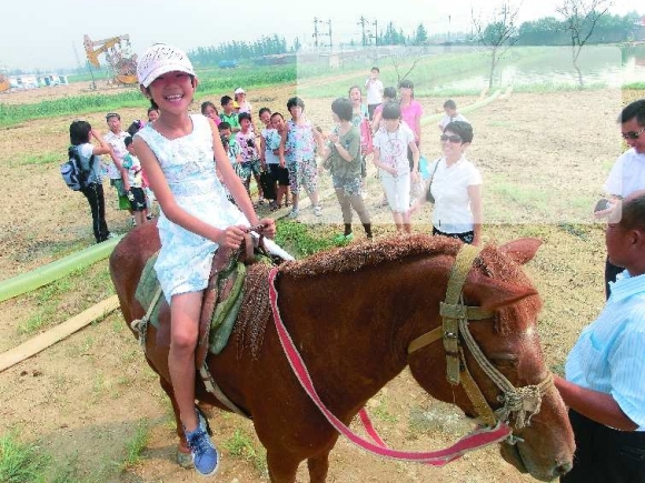 参加社区暑期学园的孩子们在白云生态养殖基地工作人员的帮助下体验骑马,孩子们骑在马背上异常兴奋。据悉,由本报主办、中国统一教育网协办的公益“暑期社区学园”在百余名小学生与志愿者老师的参与中落下帷幕。 本报记者 段学虎 摄 (详见B06)