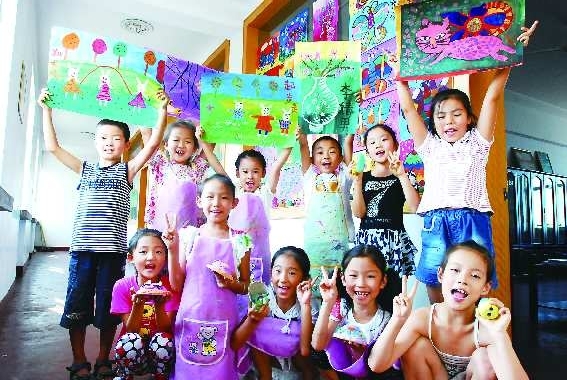 23日,在新胜社区的暑期学园中,孩子们将假期以来的绘画和陶艺作品集中展示出来。孩子们在暑期学园中学到了知识,收获了快乐。本报记者 任小杰 本报见习记者 耿璐 摄影报道