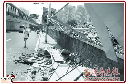 “今天早上我过来就这样了,好像没有伤着人。”马路上的一位女环卫工说,墙块砸坏围挡后,她都不敢过去打扫卫生了,很多行人走路不是很方便,她很纳闷为什么这个施工单位不把人行道立即清理出来。