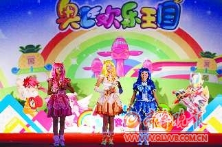 奥飞欢乐王国里小朋友们欢叫着“魔仙姐姐,大怪兽来了!”小魔仙、铠甲勇士这些动画角色全都真人上阵,本以为是有着资深表演经验的专业人员表演,谁知角色扮演者全是来自动画专业的大学生,奥飞王国里的游戏区游戏规则也都由这些大学生们参与制定。