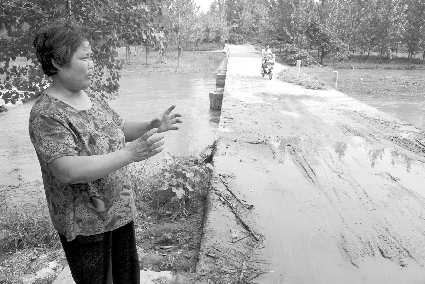 8月6日下午14时40分,袁中来到石桥北侧和村民聊天。“5日下了一天的大雨,我们村北面的河水都漫过了桥面,村民只能卷起裤腿,淌水过河。”袁中正告诉记者,村北面的石桥,是连接薛家独树村和马驹庄村的惟一一座桥,是村民出行的必经通道。