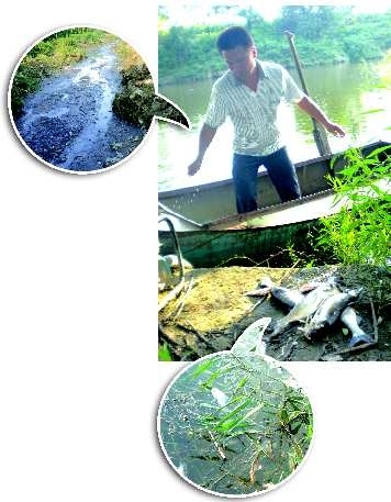 祝学秀告诉记者,去年冬天他投放了鲤鱼、花鲢、白鲢等鱼苗共计20000尾,价值30000余元。按照往年生长情况,现在鱼应该达到一条1.5—2公斤重,但水质变坏减缓了生长速度,现在的鱼每条都达不到1公斤。而到目前为止,整个鱼塘差不多死亡5000余尾鱼,共计5000余公斤。