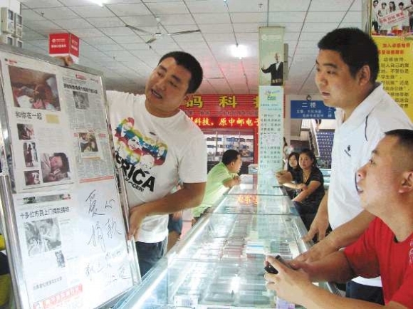 本报报道刘勇一家的困境后,爱心涌向这个不幸的家庭。23日,鸿发通讯城组织百余名员工商户共捐款近6000元,当天下午已送到刘勇家中。本报记者 刘铭 摄