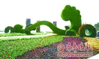 ▲北湖景区起步区“绿如意”植物造型。