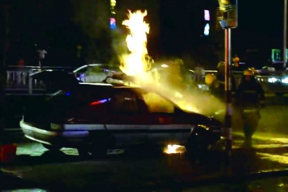 23日20时20分,一辆出租车在芝罘区海港路上行驶时突然自燃,许多市民冒着危险参与救援。幸亏消防人员火速赶到,将火扑灭。事故没造成人员伤亡。