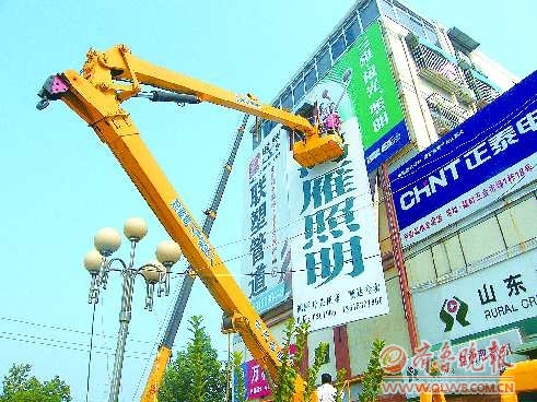 该市场一些商家未经审批,私自在临街商业楼的外墙上悬挂广告牌,严重影响了城区的市容环境。景区大队此前已通知广告业主自行拆除,但他们一直置之不理。