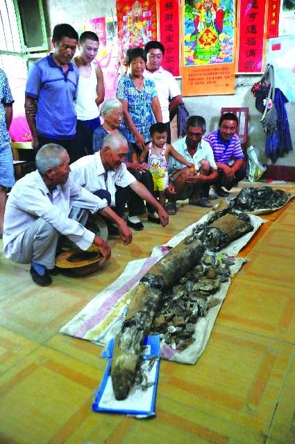 1988年夏天,苍山县城东南方向不远的南芙蓉山前,人们忙碌着取土烧砖,刨出了一段像木头一样的骨头,异常沉重,人们意识到这可能是树木化石,随即报告了县文管所,并用拖拉机将全部化石运送到县里。经过修复,这是一块长达4米的大象门齿化石。