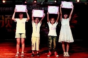 本报聊城8月24日讯 24日上午,2011齐鲁晚报·泰山啤酒暑期营销秀闭颁奖盛典在聊城大学音乐学院音乐厅隆重举行,187名成绩优异的小报童分获金、银、铜、明星和鼓励奖。其中,郭欣源等四位小报童摘得金奖,各获1000元奖金。