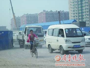 上午10点钟左右,并不是上下班高峰,但工地上仅存的两个车道依然十分拥挤,行人、自行车、大小汽车都挤在了一起,路面上坑坑洼洼,每当车辆驶过带起阵阵尘土。