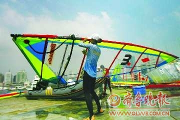 25日,在奥帆中心附近海域,参加2011全国翻波板锦标赛和2011全国激光级和激光镭迪尔级帆船精英赛的选手正在整理帆船准备下海比赛。据了解,此次全国翻波板锦标赛共有山东、上海等15支队伍报名,合计147名选手参加。比赛时间截止到9月1日。