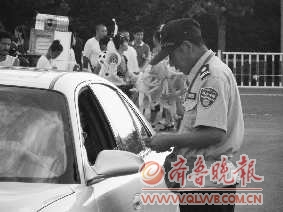 相对于一直在太阳下暴晒的两位马师傅来说,坐在临时停车场出口处“乘凉”的周茂平师傅看起来轻松些。后来记者才知道,由于每天都要在这个6890平方米的停车场里奔波,不停地引导车辆按次序停放,周师傅的左脚起满了泡,走路一瘸一拐。“两位马师傅照顾我,非得让我坐在这儿休息,看他们不停地忙碌,我都有点不好意思了。”