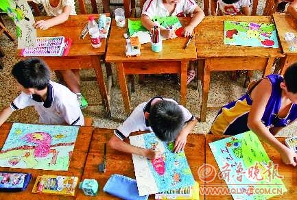 25日,由山东省教育厅主办的全市中小学生艺术水平等级考试在德州市第九中学拉开帷幕,近700名学生参加美术、器乐和舞蹈等项目的考试。去除等级考试的功利性后,孩子们的考级也显得轻松起来。图为一个考试儿童画的考场。 本报记者 马志勇 摄