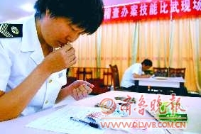 25日,在全市食品药品监督系统稽查办案技能比武现场,24名一线药品稽查人员各显神通,揪出“李鬼”。