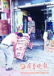 8月24日,在日照大学城商业街,一商家正在将采购的货物搬运到商店内。由于临近学校开学,商业街内不少店铺开始忙碌着采购所需商品,以便做好应对开学到来的学生购物的准备。