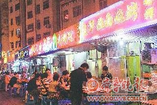 每天从晚上7点左右开始,纪念路的各烧烤店外就坐满了顾客。记者采访发现,店内几乎“空荡荡”,顾客都选择在店外面摆放的桌椅上坐着。多家烧烤店称,以前晚上9点多就收摊,最近要推迟到晚上11点,顾客也比平时翻番。