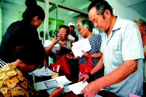 25日,在潍坊市潍柴社区居委会,居民正在办理城镇居民社会养老保险。为了方便社区里的老年人办理城镇居民社会养老保险,社区工作人员联合劳动局、银行共同为老年人办理养老保险,让老年人不出社区就能享受到“一条龙服务”,为腿脚不便的老人提供了方便。