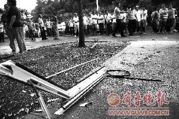 现场留下的破碎窗框,本报记者 张晓鹏 杨宁 摄