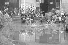 8月29日下午,一场急雨过后,市区内部分商店、小区门口出现了大量积水,孩子们用这些积水打起了水仗,玩的不亦乐乎。图为两个小孩在商店门口的积水里玩耍。 记者 张牟幸子 摄影报道