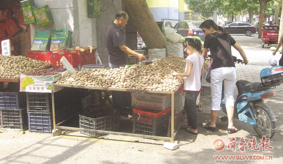 进入8月以来,泰城本地鲜核桃纷纷上市,今年的鲜核桃与去年相比,由7元一斤涨到9元,上涨近3成。