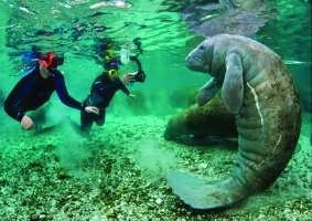 在佛罗里达的Crystal River,两位潜水的游客突然“遭遇”一直巨大海牛!在这面对面的时刻,游客开始很惊恐,后来终于发现这只胖乎乎的海牛,只是想让他们帮自己挠挠它的大肚子。