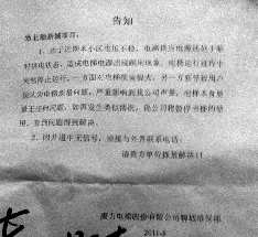在北顺新城的电梯内,电梯生产厂家康力电梯股份有限公司在聊城的维保部贴了一张告知,声称电源跳闸电梯突然停止运行,一方面对电梯损害很大,另一方面导致用户误认为电梯质量问题。如再发生类似情况,将暂停电梯使用。