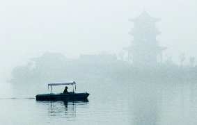 29日清晨,聊城市区薄雾笼罩,东昌湖别有一番韵味,远处的名人岛隐约可见。 本报记者 邹俊美 摄