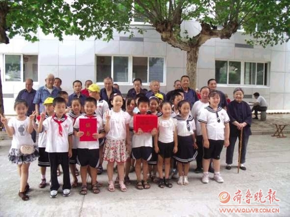 近日,济南营市东街小学2009级6班的18名同学来到济南市社会福利院,将他们今年暑期参与本报第二届“齐鲁雏鹰工程报纸营销大赛”时卖报所得捐给这里的老人。