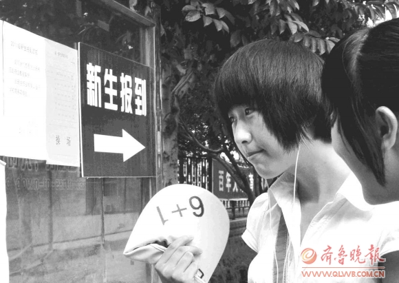 8月30日,泰山中学迎来2011级的新生。报到当天,新生们查看了分班情况并领取军训服装,准备进入军训阶段。图为两名学生正在看新生报到栏的信息。本报记者周青先赵苏炜摄