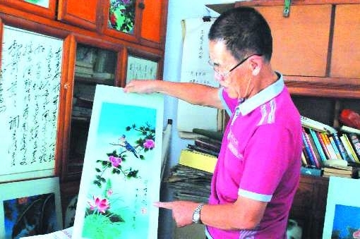 李文庆老人告诉记者,早在玻璃画非常兴盛的时候,他曾经收过三个徒弟,其中有一个基础很好,画得也不错,但是最后却改行去开车了,其他的两个徒弟现在也都不知做了什么行当。